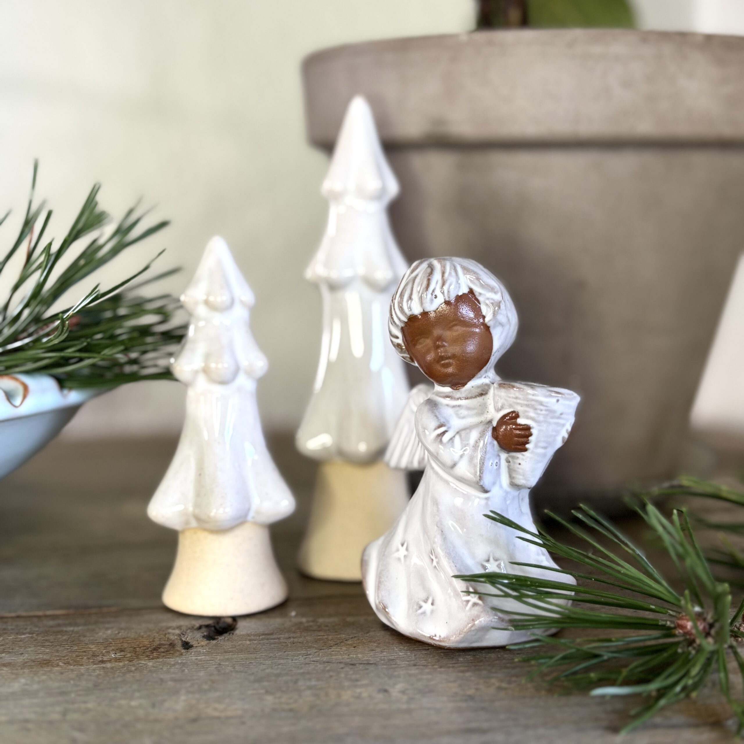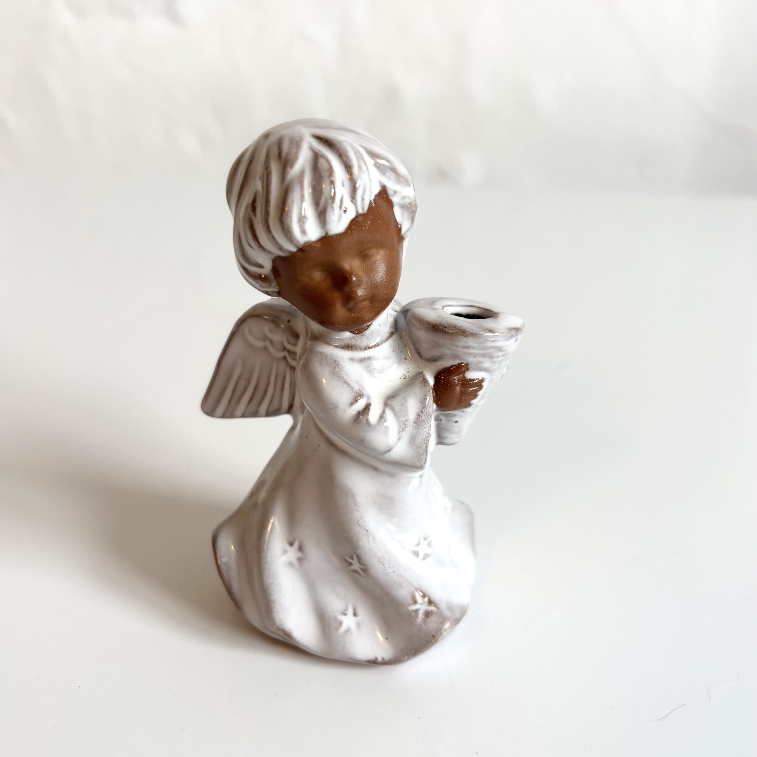 En smuk retro juleengel i ler.
